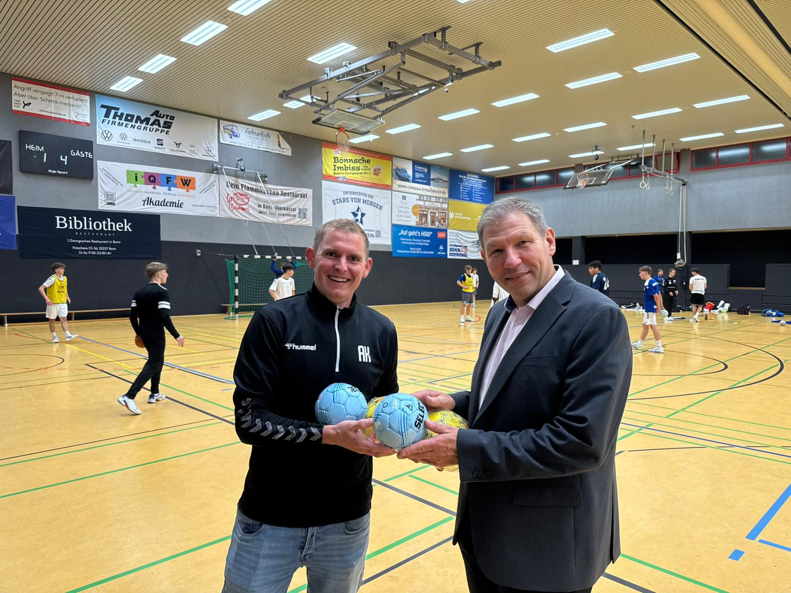 Zum Saisonstart konnte sich die HSG Jugend über neue Bälle für alle Mannschaften freuen. Der Förderverein stellte allen Teams einen neuen Spielball von Select. Die Bälle nahmen Andreas Kurenbach (Vorsitz) und Christoph Schlecht (Vorsitz Jugendausschuss) dankend entgegenen.
